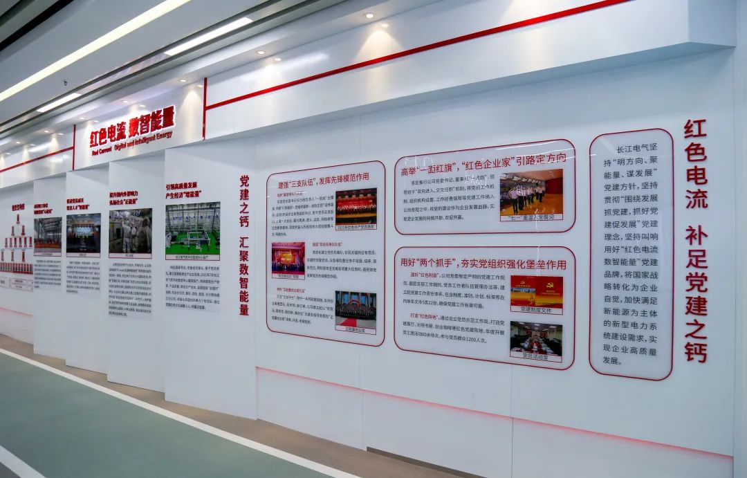 該篇章薈萃了長江電氣黨委積極探索非公黨建發(fā)展路徑,展示了公司多年的黨建工作成果。長江電氣始終堅(jiān)持“明方向、聚能量、謀發(fā)展”黨建方針,堅(jiān)持貫徹“圍繞發(fā)展抓黨建,抓好黨建促發(fā)展”黨建理念,堅(jiān)持叫響用好“紅色電流 數(shù)智能量”黨建品牌,將國家戰(zhàn)略轉(zhuǎn)化為企業(yè)自覺,加快滿足新能源為主體的新型電力系統(tǒng)建設(shè)需求,持續(xù)實(shí)現(xiàn)黨建引領(lǐng)企業(yè)高質(zhì)量發(fā)展。該展廳也是作為光谷數(shù)字經(jīng)濟(jì)黨建十景,實(shí)行預(yù)約制面向社會開放。