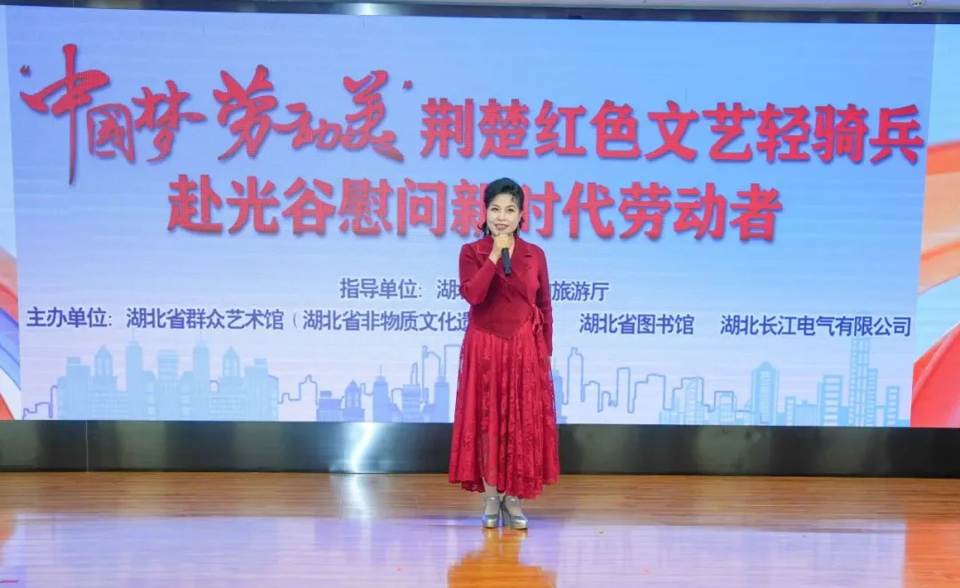 中國夢,勞動美!在“五一”國際勞動節和“五四”青年節來臨之際,為弘揚勞動精神,4月29日,由湖北省文化和旅游廳指導,湖北省群眾藝術館(湖北省非物質文化遺產保護中心)、湖北省圖書館聯合組織荊楚紅色文藝輕騎兵,赴長江電氣開展慰問演出。