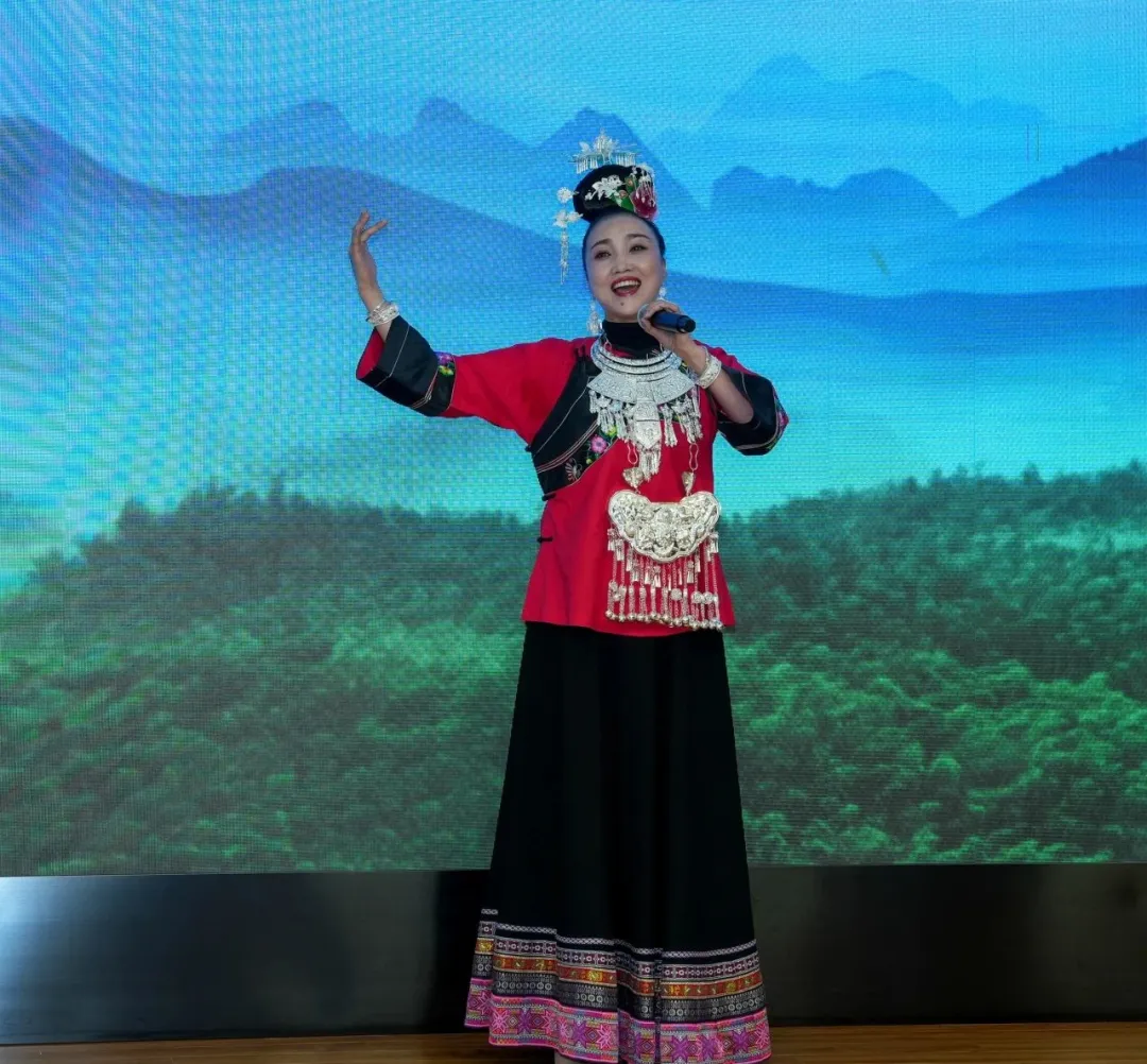 央視“青歌賽”金獎獲得者吳娟用清脆嘹亮的嗓音喊出了山歌《這山沒得那山高》,表現了熱辣沸騰的勞動生活。