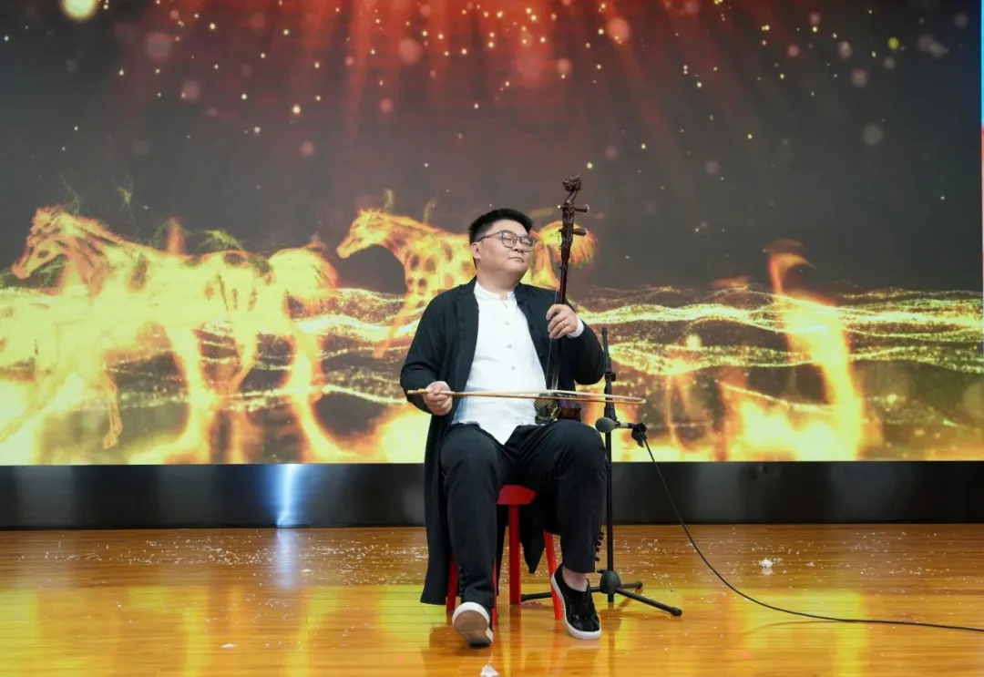 二胡獨奏《戰馬奔騰》氣勢如虹、大氣磅礴,表現了祖國邊疆騎兵戰士的英勇與頑強,贏得了現場陣陣掌聲。