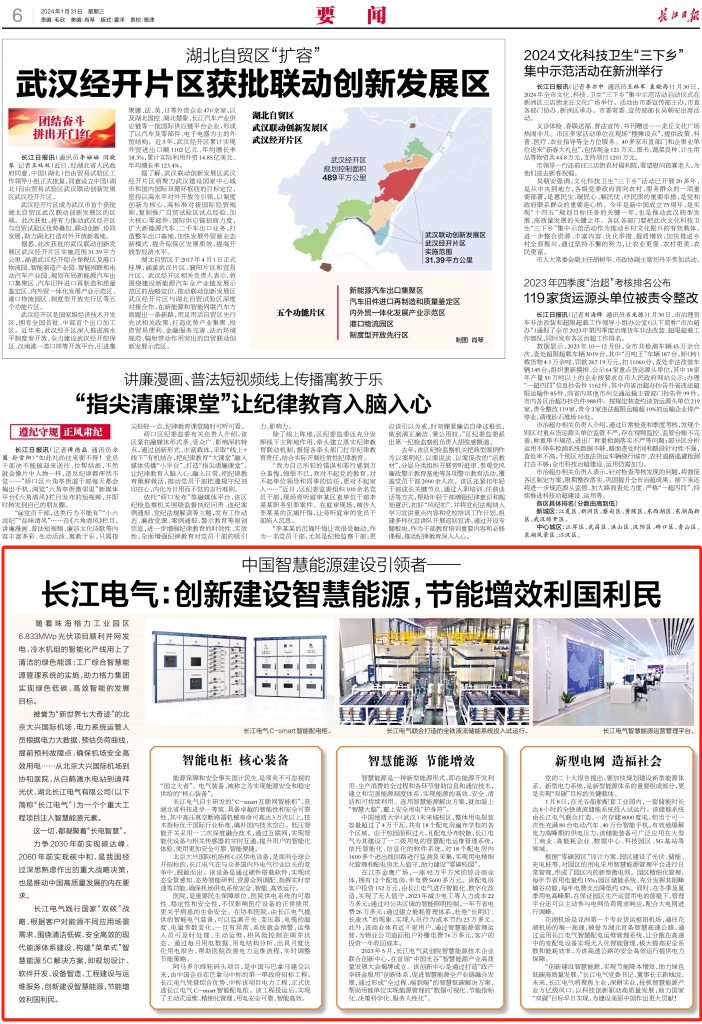 2024年1月31日,《湖北日報》和《長江日報》均在要聞版,以《中國智慧能源建設引領者——長江電氣:創新建設智慧能源 節能增效利國利民》為題,專題報道長江電氣高質量發展。