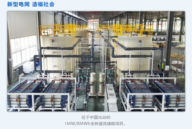 1月8日,在光谷船舶配套工業園內,一套儲能時長達8小時的全鐵液流儲能系統投入試運行。這套系統一次存儲8000度電,相當于可一次性充滿80臺電動汽車、40萬臺智能手機,有效地緩解電力高峰期的供電壓力,該儲能裝備可廣泛應用在大型工商業、高能耗企業、數據中心、科技園區、5G基站等領域。