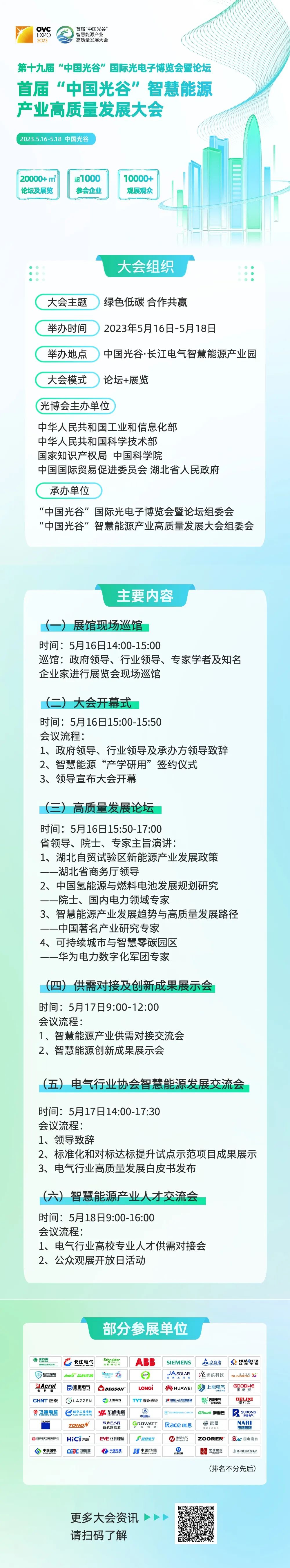 2023年5月16日至18日,首屆“中國光谷”智慧能源產業高質量發展大會將在中國光谷舉行。本次大會是第十九屆光博會首次舉辦智慧能源領域分論壇,大會以“綠色低碳,合作共贏”為主題,旨在為政府、科研機構、行業及用能單位搭建“共建、共享、共治、共贏”發展平臺,以數字化勾勒綠色發展藍圖,共同打造智慧能源產業生態圈,匯聚智慧能源產業發展磅礴力量。